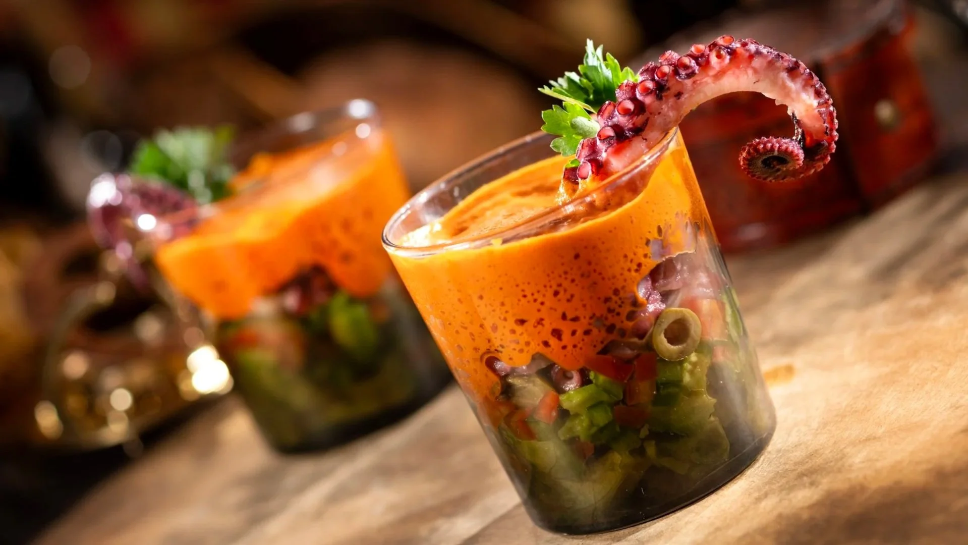 Of course, no pirate adventure would be complete without a feast fit for a crew! At The Beak & Barrel, the menu is bursting with bold flavors and playful bites that feel like treasure unearthed from the seven seas. Adventurous foodies can dive fork first into the Kraken’s Catch, a refreshing salad of tender octopus tossed with bright citrus, olives, peppers, avocado, and a splash of almond pepper foam. For something sharable, set your sights on Island Provisions. a spread of plantain chips, blue corn tortillas, flatbreads, and tropical dips that’s perfect for plundering with your shipmates. And don’t miss the Cook’s Corn Griddle Cakes, golden and cheesy with a kick of chili peppers, finished with cotija cheese and a dollop of lime sour cream.