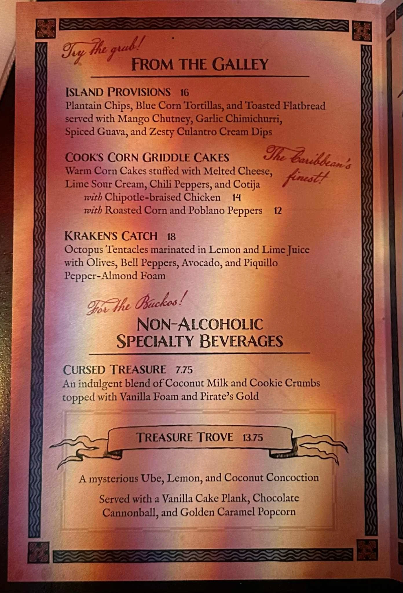 For the serious collectors, the Plunderer's Punch is a must. It's The Kraken Black Spiced Rum with blackberry, lime, and vanilla, served in an incredible souvenir pirate skull mug that is limited to one per guest. The mug alone is worth the loot!