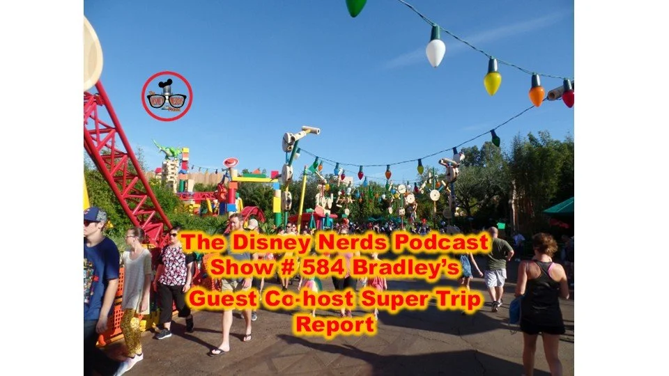 Hello and welcome to show 584. This week Bradley takes his turn as Guest Co-host with an incredible Trip report. Listen in as Brad goes over the details of their weeklong Dive into WDW. This is a special trip as we listen in as to how Bradley shows his friends and their kids an incredible trip to the World. A lot of tips get dumped on this show. Bradley was a great guest and we hope to see him again soon. Thanks for listening guys and send all of your emails to thedisneynerds@yahoo.com